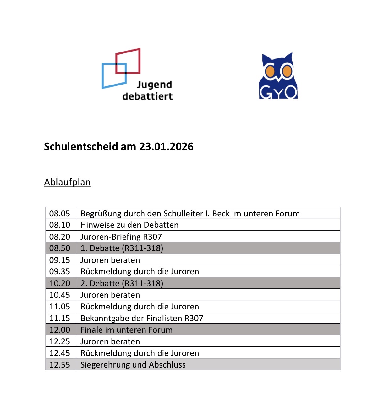 Hinweis: Nach der Zeugnisausgabe findet planmäßiger Unterricht statt.